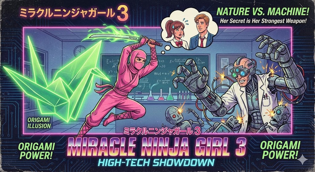 「ゆえに、お前の正体、すなわち『ジェニファー・タナカ=ミラクルニンジャガール』という事実は、絶対に知られてはならん。もし知られたら、一族郎党、全員でハラキリだ」 「肝に銘じます!」